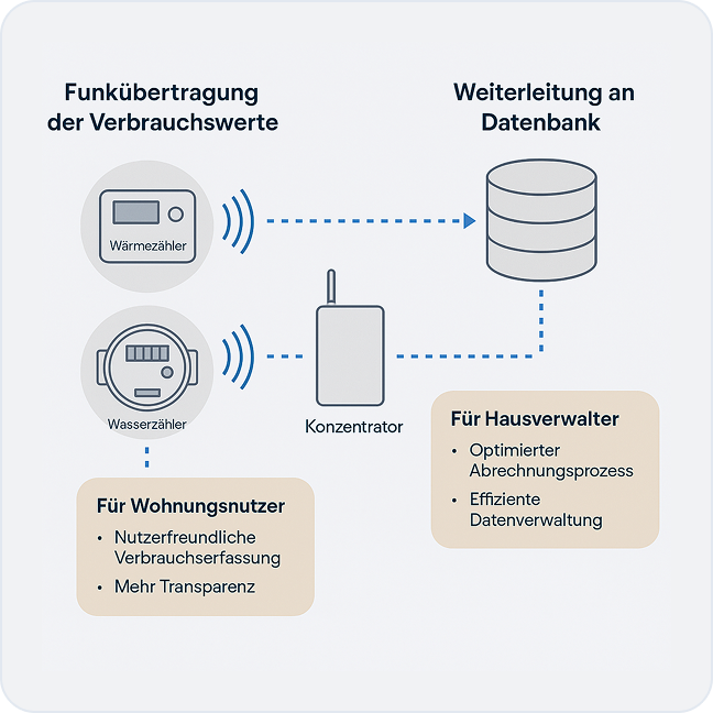 Fernauslesung per Funk: Bei modernen, funkfähigen Geräten werden die Verbrauchsdaten automatisch und regelmäßig übertragen – ohne dass ein Ableser Ihre Wohnung betreten muss.